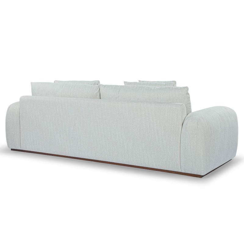 The Alladin 3 seater sofa offers a refined take on casual comfort. Upholstered in a soft neutral fabric and grounded by walnut-stained rubberwood legs, it brings warmth and balance to your space. Its gently curved arms and tailored silhouette make it a versatile fit for both relaxed and polished interiors.