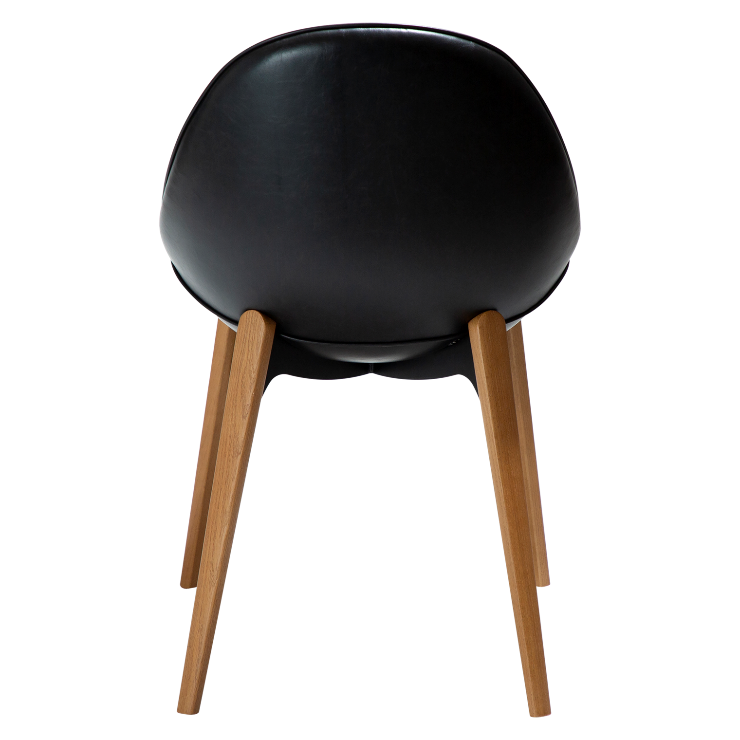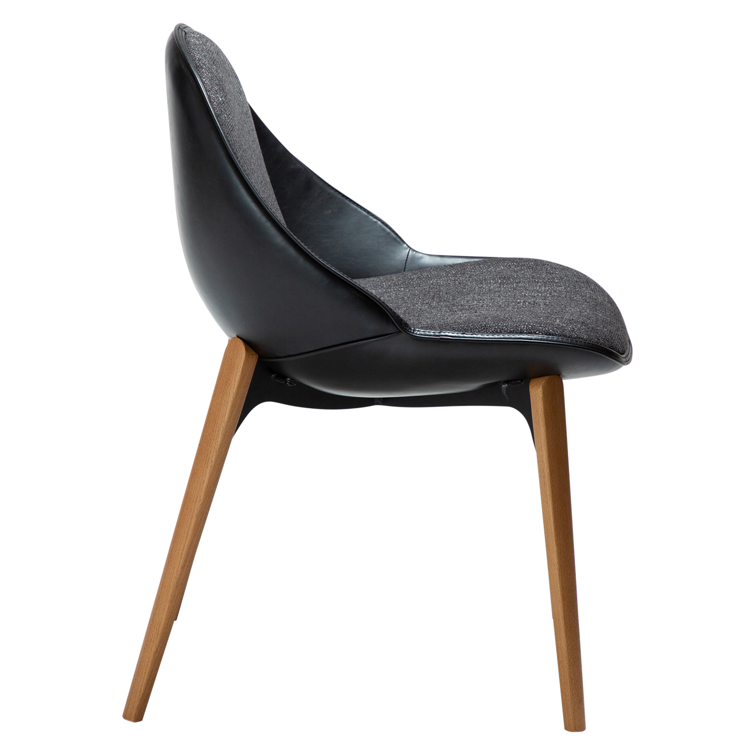 The ARCH chair comes with an artistically rounded back that continues into the seat as an opened seashell; inviting and offering a comfortable seat. The seat is mounted on a metal frame with stylish wood legs that extend slightly up the back, giving it a unique and elegant appearance.