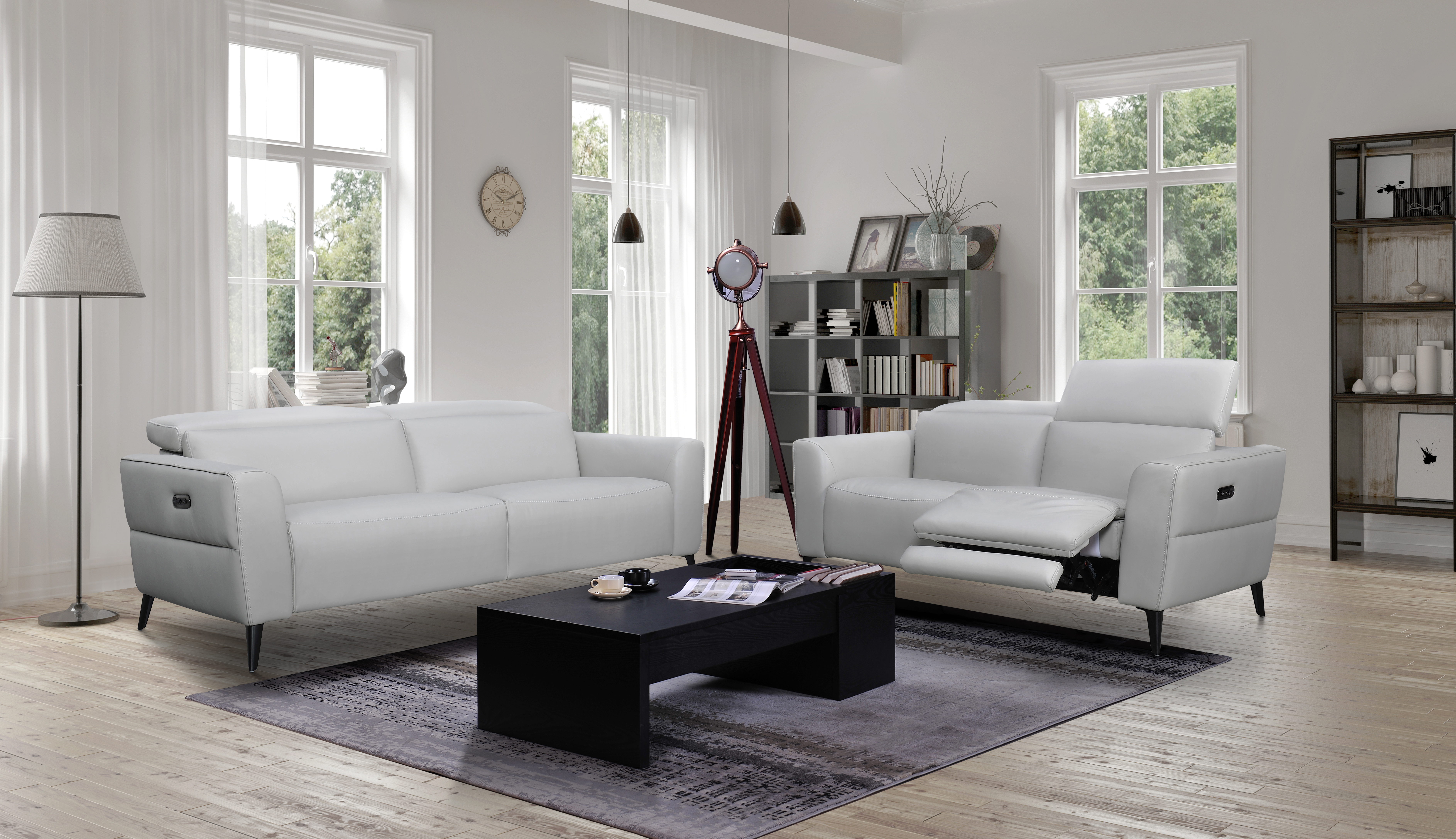 The Astro Motion Leather Sofa combines sleek modern style with everyday functionality, featuring elegant metal legs and smooth light grey leather upholstery. Designed with a slim profile and clean lines, it’s perfect for small spaces without sacrificing comfort or visual appeal. The power reclining function and adjustable headrests offer customizable support, making it ideal for lounging, relaxing, or entertaining. Its compact yet sophisticated design fits seamlessly into contemporary interiors, and it's also available as a matching loveseat to complete your living space.