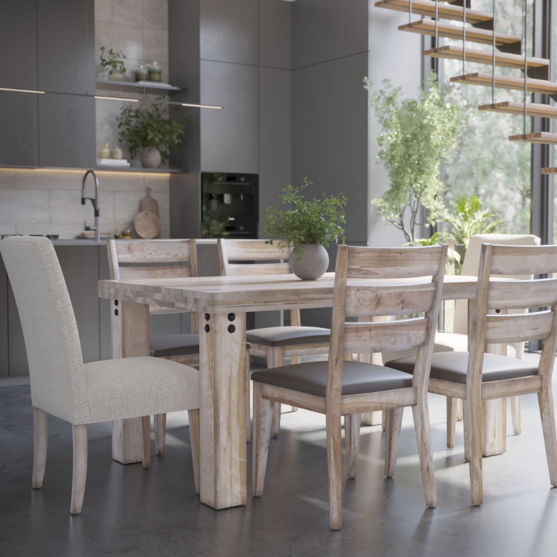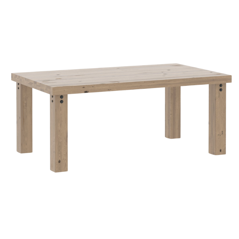 This gorgeous solid wood table is as simple as it is impressive. With its unmistakable cachet and the addition of metal accents, it is reminiscent of the furniture in old industrial spaces.