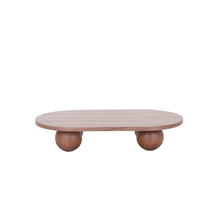 A wide, low-profile coffee table that combines MDF construction with walnut veneer and solid wood detailing in a natural finish. Its clean lines and spacious surface make it a functional anchor for relaxed, modern living spaces. Thoughtfully designed to complement both neutral and warm-toned interiors.