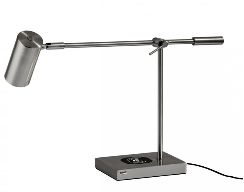The Collette Adesso Charge LED Desk Lamp is an adjustable, mid-century modern styled LED Task Light that includes a wireless charging pad with Qi inductive charging technology. Many smartphones have Qi technology built in, so just place your phone on the pad and it will charge right up. No cords, no mess. It's that easy!