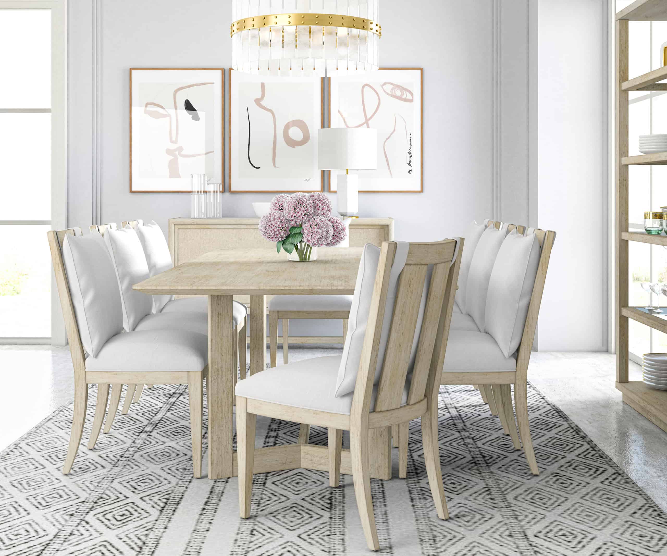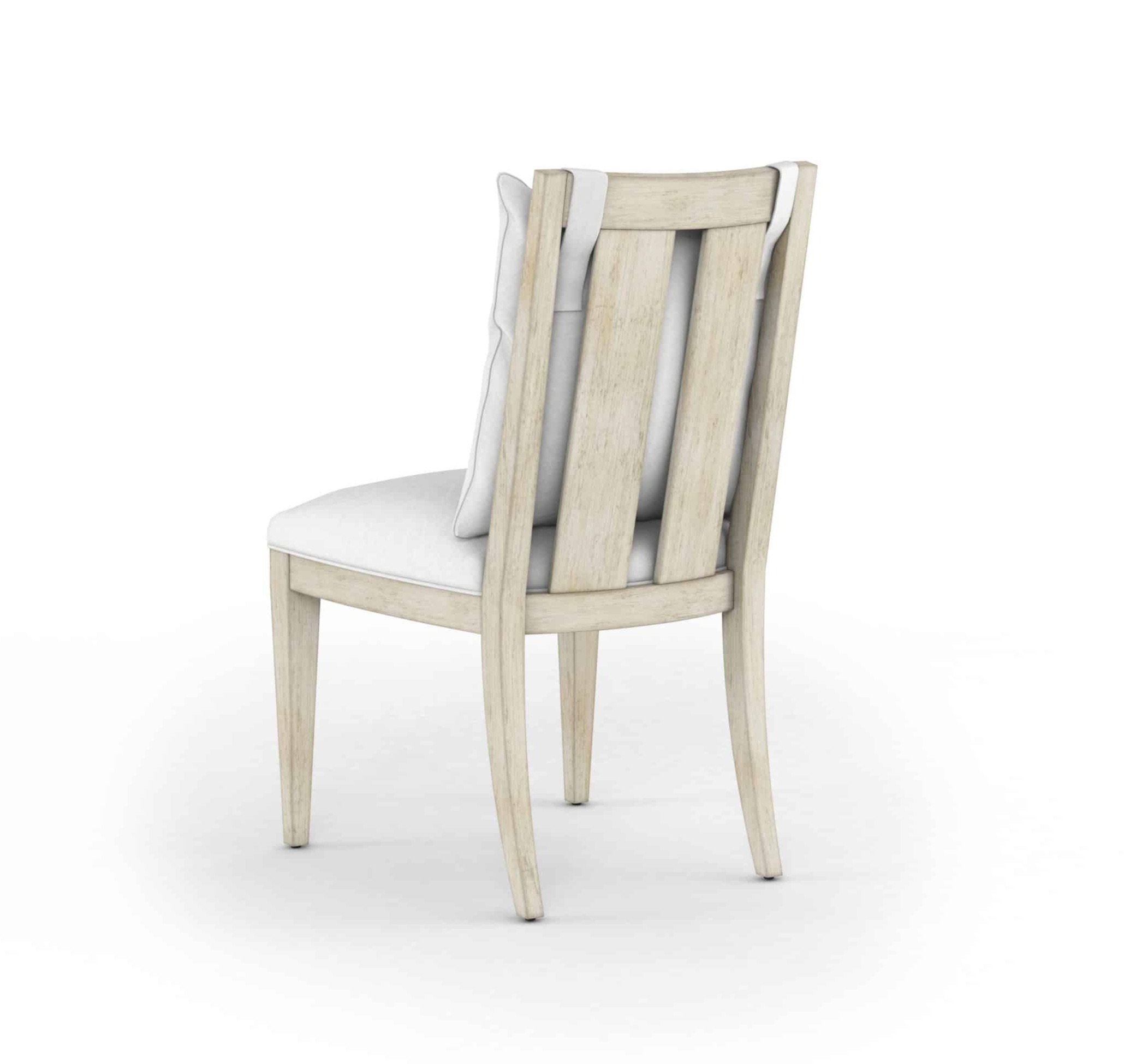 The Cotiere Side Chair blends mid-century inspiration with modern comfort. Tapered legs and broad vertical back supports add vintage flair. Upholstered in a linen blend fabric with a cushioned back for all-day ease.