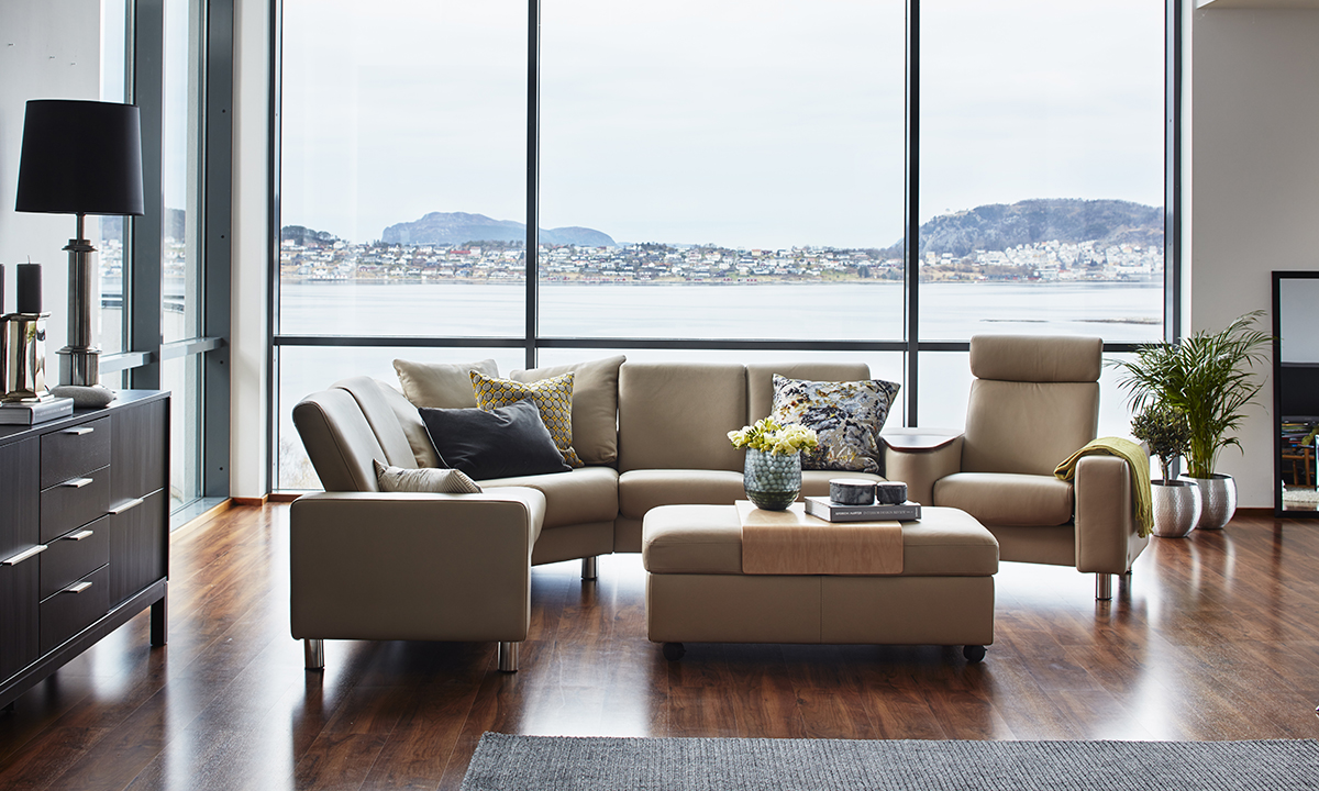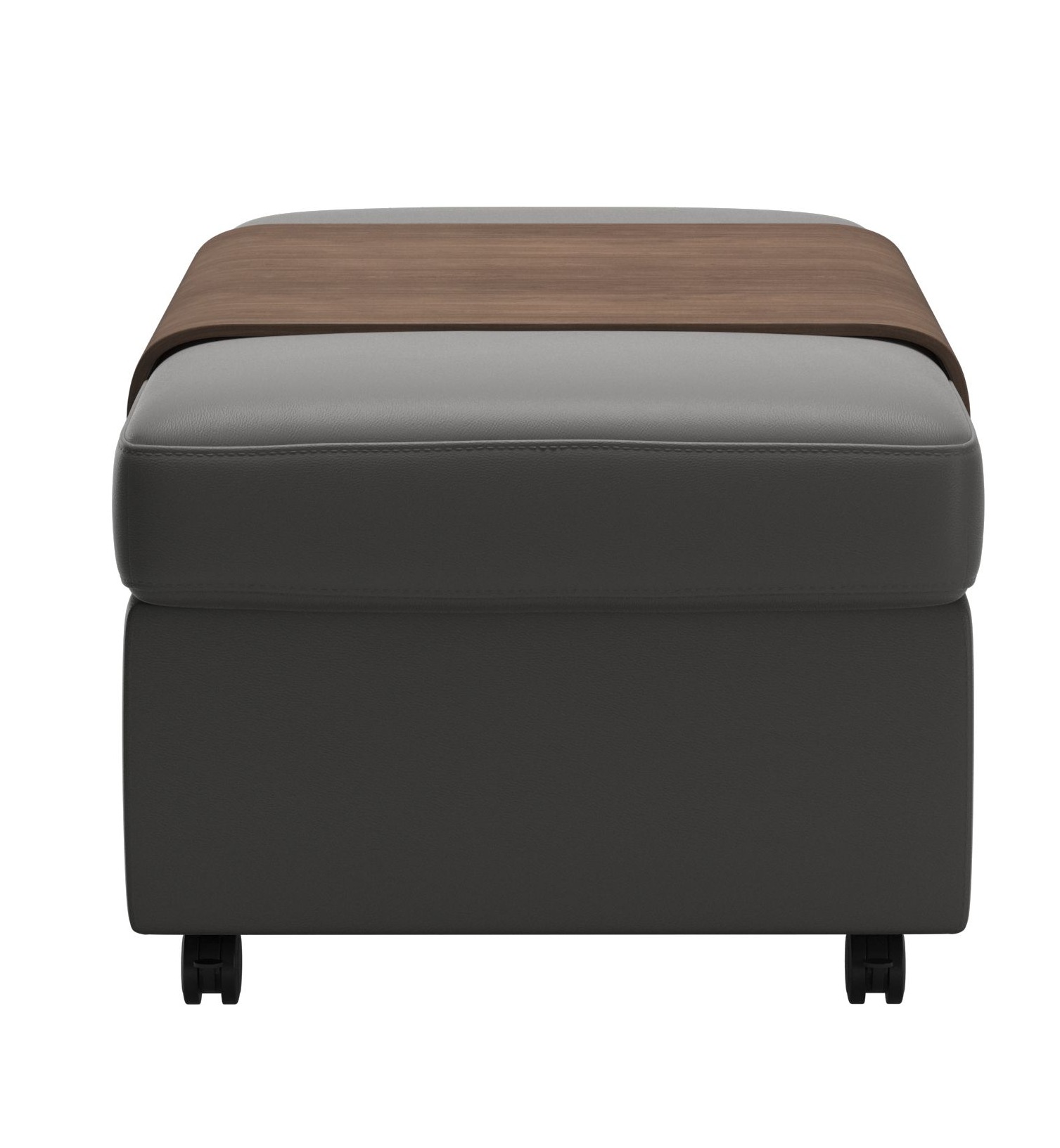 The Stressless Double Ottoman has plenty of leg room for two, plus ample storage space inside. The optional table top serves as a handy refreshment table that can be placed on the ottoman when needed.