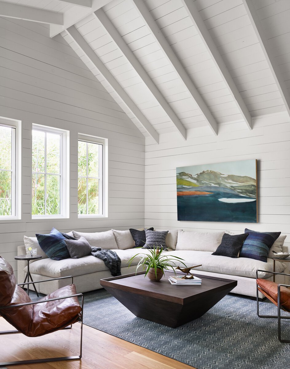 The Drake Coffee Table features a coal grey-finished acacia wood that highlights inviting angles and a sleek, broad, recessed top. Its simple yet balanced design adds both style and functionality to any living space.