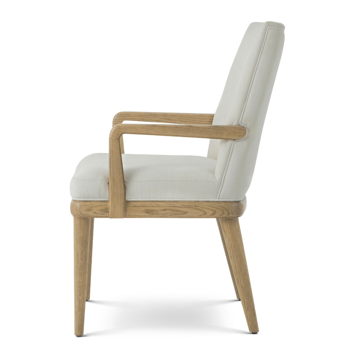 The Essence Dining Arm Chair features a curved white oak frame and plush upholstery, blending comfort with sculptural elegance. Finished in Blonde for a refined, organic look.