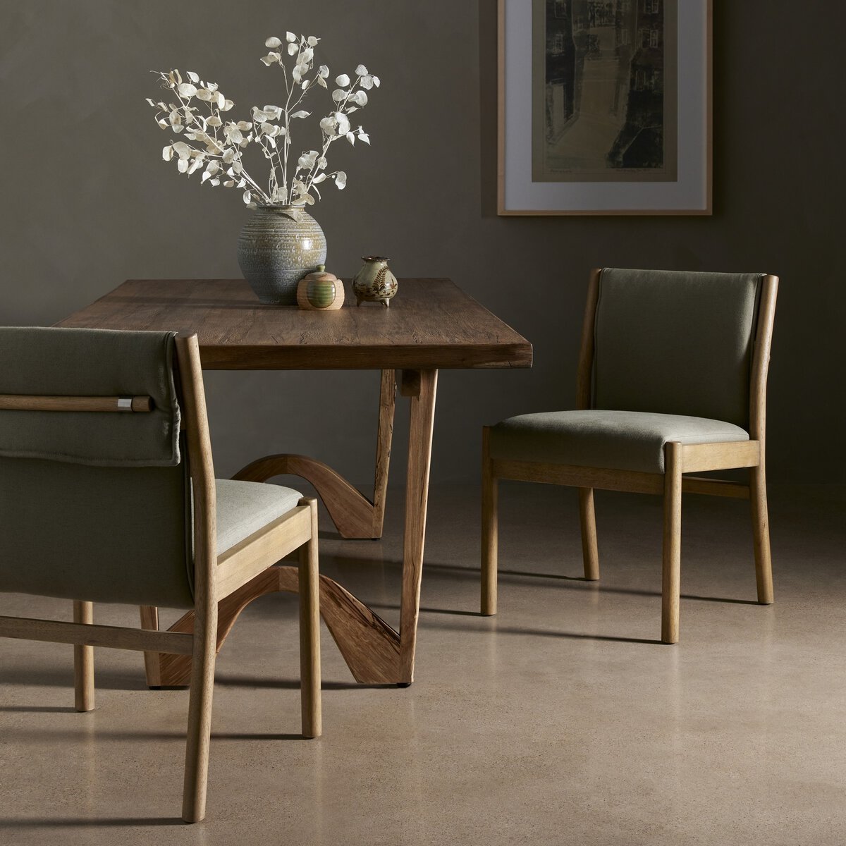 Hito Dining Chair- Style meets sensibility with taupe high-performance fabric over solid parawood framing, providing a textured look for everyday dining. Designed to resist spills, stains, and wear, ensuring long-term comfort and durability.