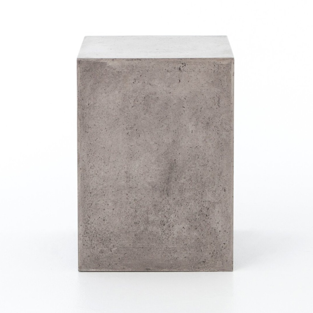 The Hugo End Table blends traditionally outdoor materials for indoor use, with a minimalist concrete frame in dark grey and a floating black metal shelf. Its sleek, industrial-inspired design adds a modern touch.