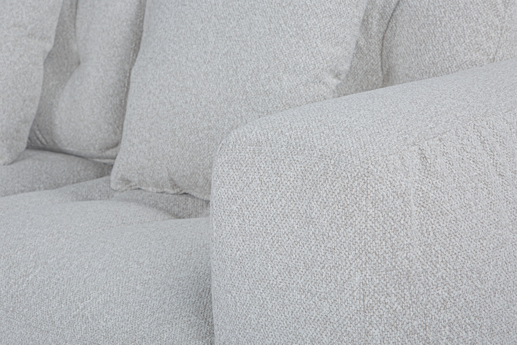 The Jasmin 4 seater sofa brings together architectural lines and inviting comfort. Wrapped in Vista-111 Champagne fabric, it offers a soft neutral tone that complements a wide range of interiors. Its galvanized steel legs add a touch of industrial edge, while the walnut-stained wooden plinth base grounds the design with natural warmth. Deep cushions and a spacious seat provide everyday comfort, making it as functional as it is striking. Whether styled in a minimal loft or a layered living room, the Jasmin sofa makes a refined statement without overpowering the space.