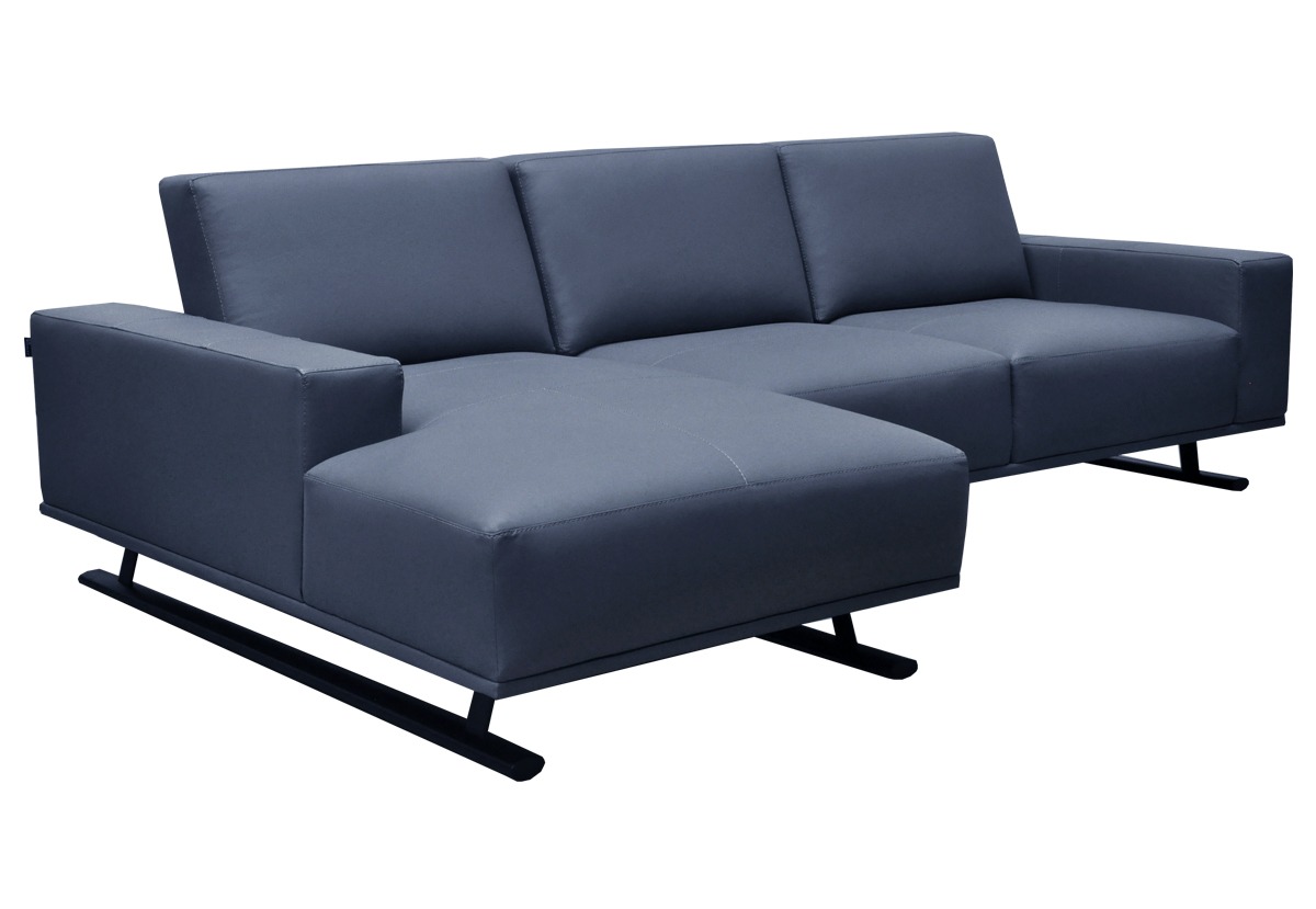 If you are after practical and comfortable sectional, it does not get better than the JITSU. It's upholstered in blue polyester blend fabric, with foam cushioning construction. This two-piece set includes one sofa and one wide chaise with solid metal legs. It is available in RAF and LAF orientation.