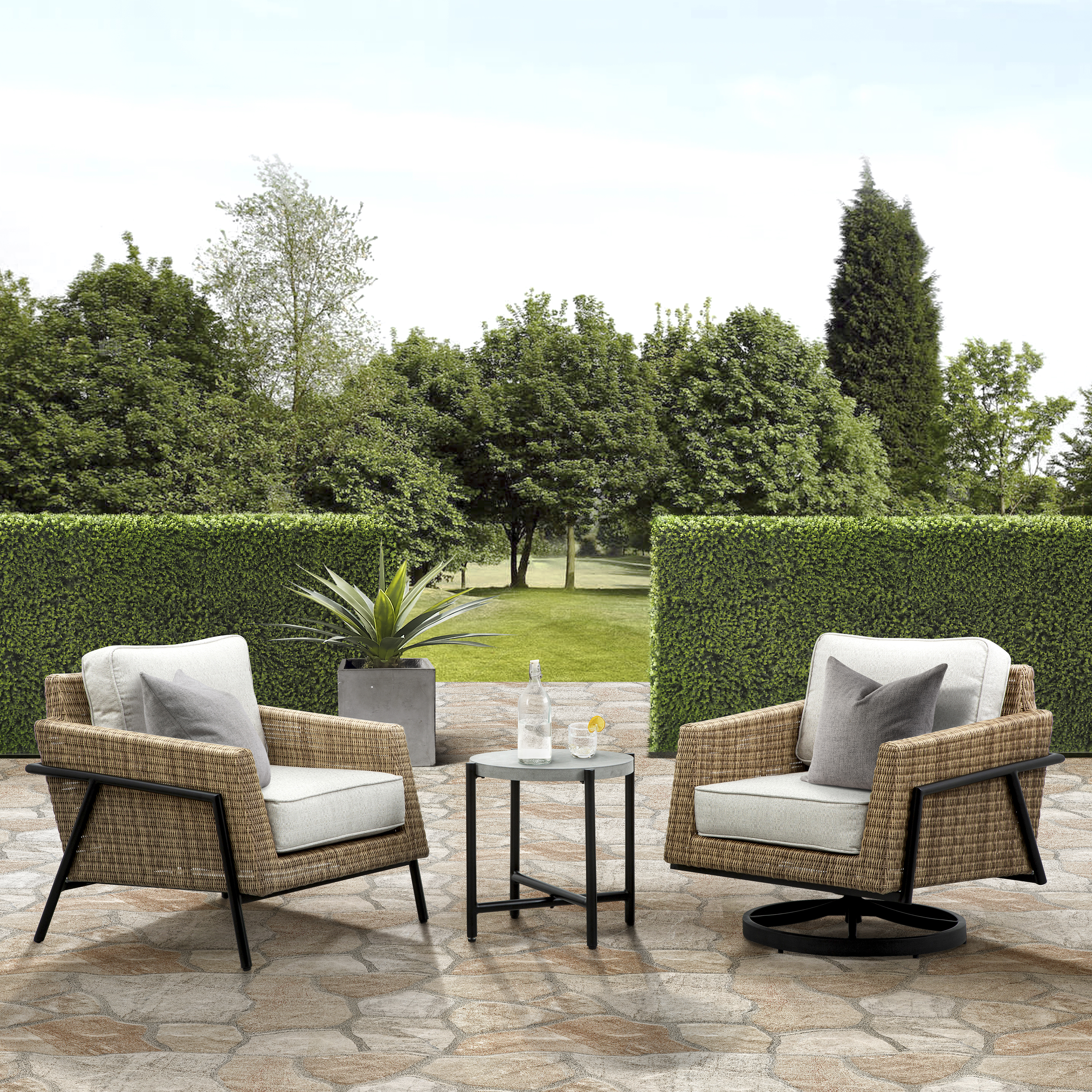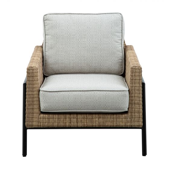 Relax and rejuvenate with the meticulously crafted Jovi 4-Piece Sofa Set. Designed for both comfort and style, this patio set features a classic profile with plush, loose seat and back cushions resting on a wicker base. The sleek black-finished aluminum frame provides sturdy support while adding a contemporary touch to its timeless design.