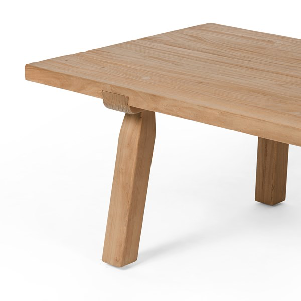 Inspired by early French farmhouse design, this simple-spirited coffee table is crafted from natural-finished reclaimed elm. Exaggerated joints and dowels add unique character, making it a charming and rustic addition to any living space.