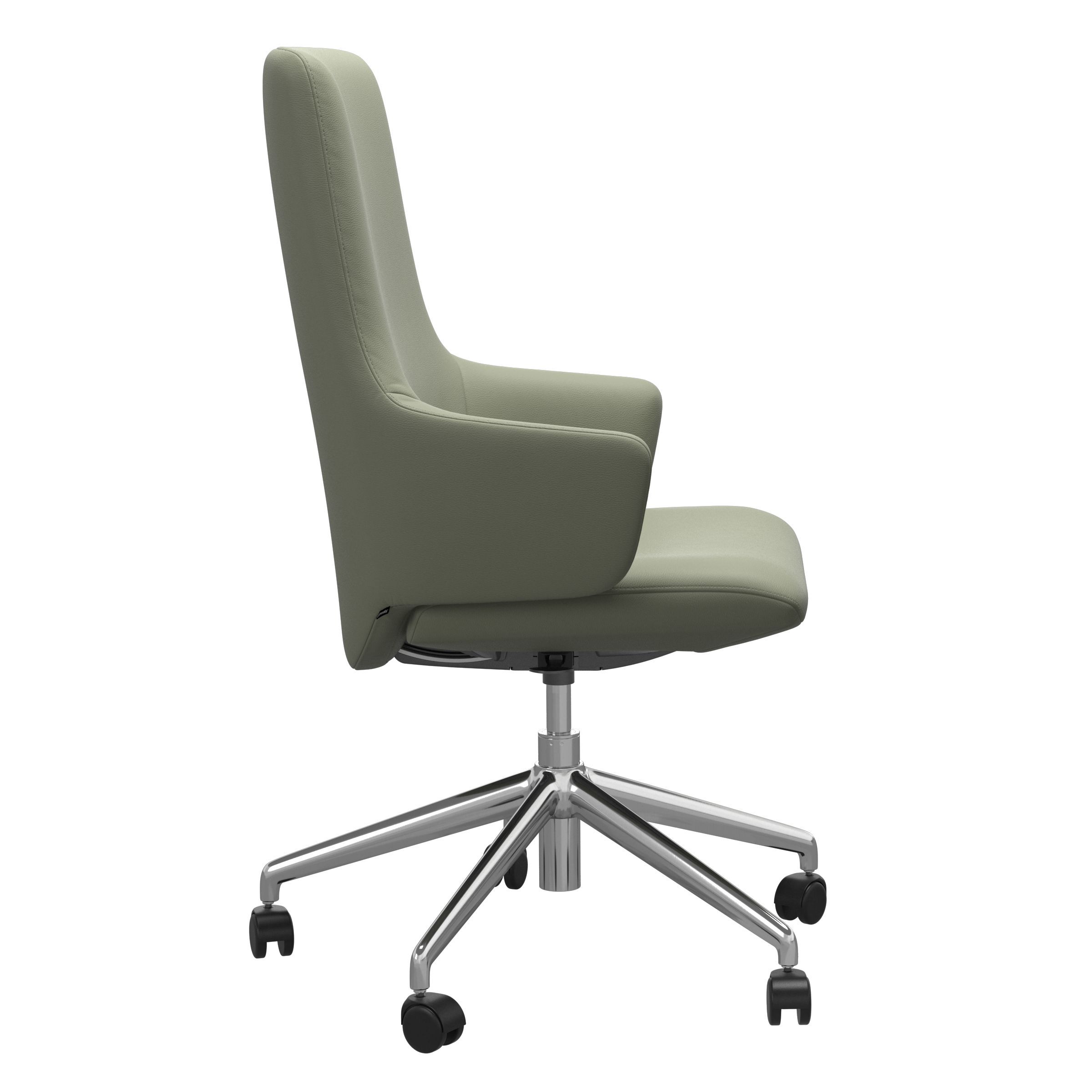 Designed to complement any style, Stressless® Home Office chairs offer effortless movement and continuous support. The seat and back adjust in harmony as you recline or lean forward, reducing pressure on your lower thighs. Height-adjustable by up to 4 inches and easy to move with smooth-rolling wheels, they combine comfort, flexibility, and sleek design. Available in a wide range of covers to match your interior even your dining chairs.