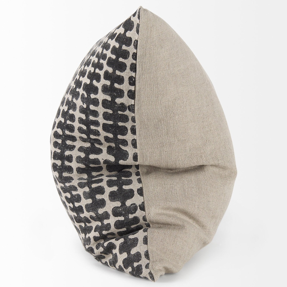 Beige and Black Fabric Patterned Decorative Pillow Cover