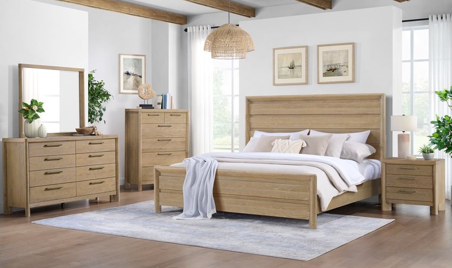 Bring the outside in with the light and airy, casual style of the Pacific Grove collection. Burnished and aged hardware accent the sand dune colored finish featuring light wire brushing, glazing, rasping, and sand-through. You'll find a perfect blend of modern, rustic, and coastal design aesthetics with the rounded shapes, and neutral tones.