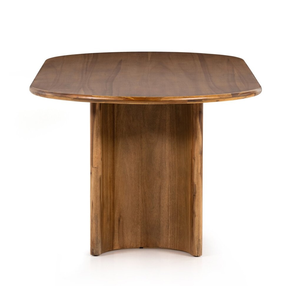 Elevate your dining room with the oval Paden Dining Table, crafted from thick acacia veneer. Its sculpted crescent-shaped legs and spacious oval tabletop, finished in a soft sandy hue, bring warmth and organic elegance to your space. Perfect for gatherings, this table blends natural beauty with modern style for a sophisticated look.