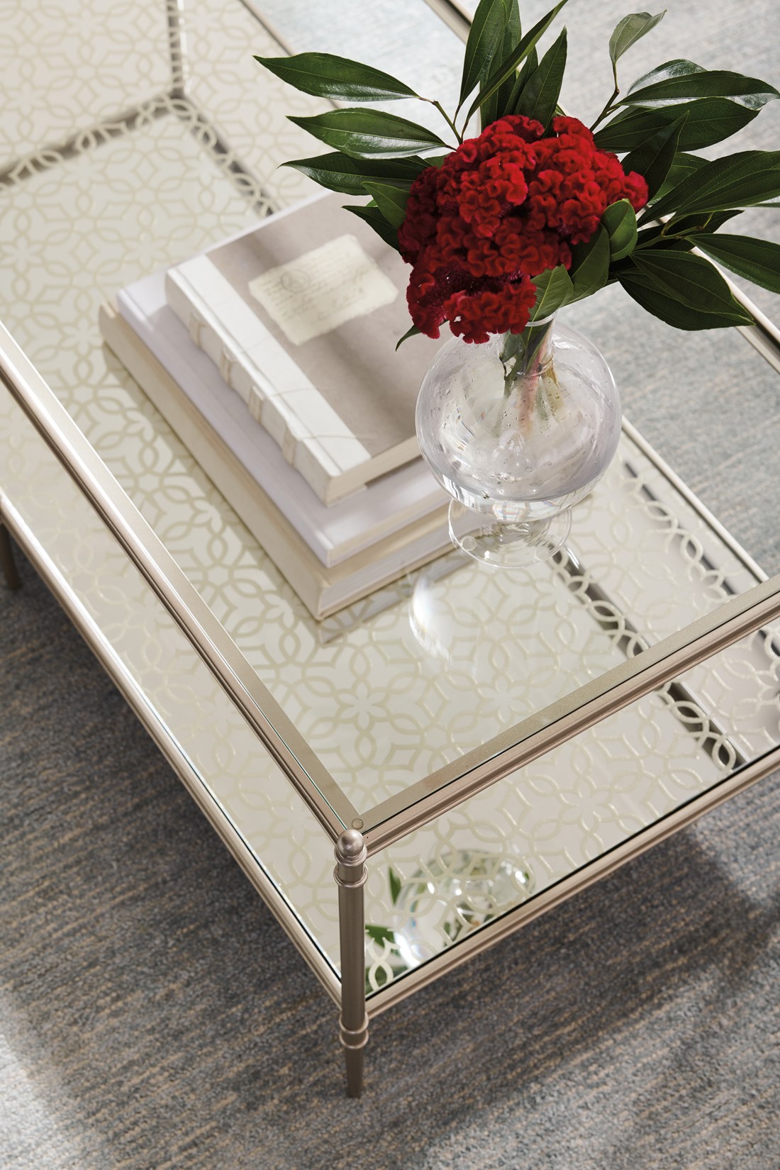 There's only one way to describe this table: perfect. Crafted of glass, metal, and mirror, it comes by its glamourous character naturally. This distinctive table boasts a Neutral Metallic finish—a seamless blend of silver and gold—that accentuates its clean lines. A clear glass top creates another layer of visual appeal when you look through it and see the lower shelf and its back-painted mirror featuring an exquisite Silver Leaf pattern. Designed to blend seamlessly in any setting, this perfectly scaled table is the epitome of elegance.