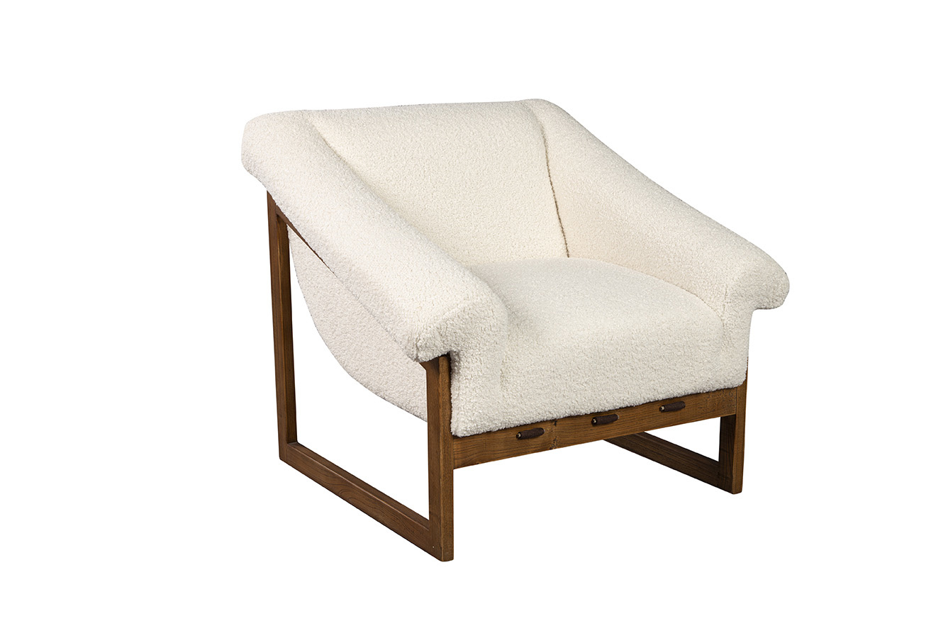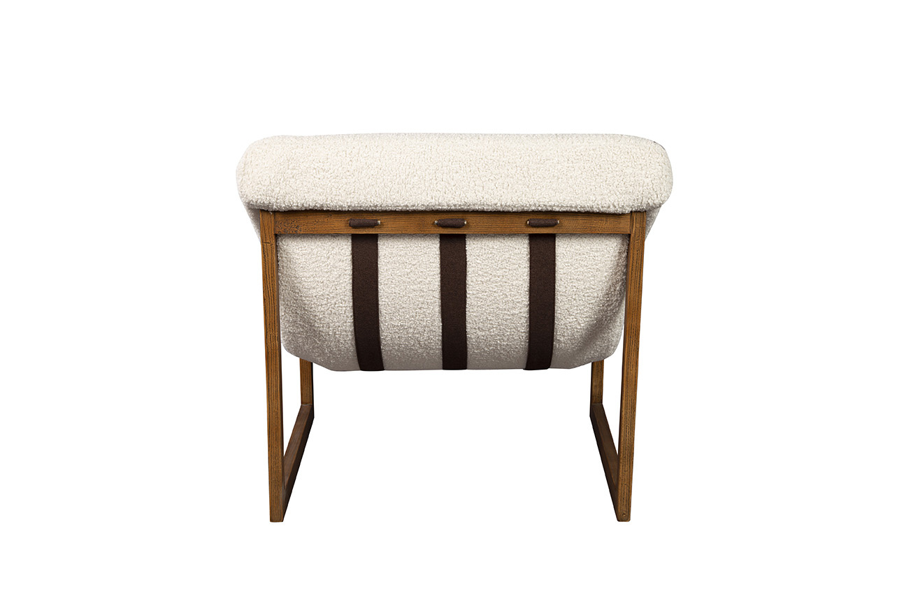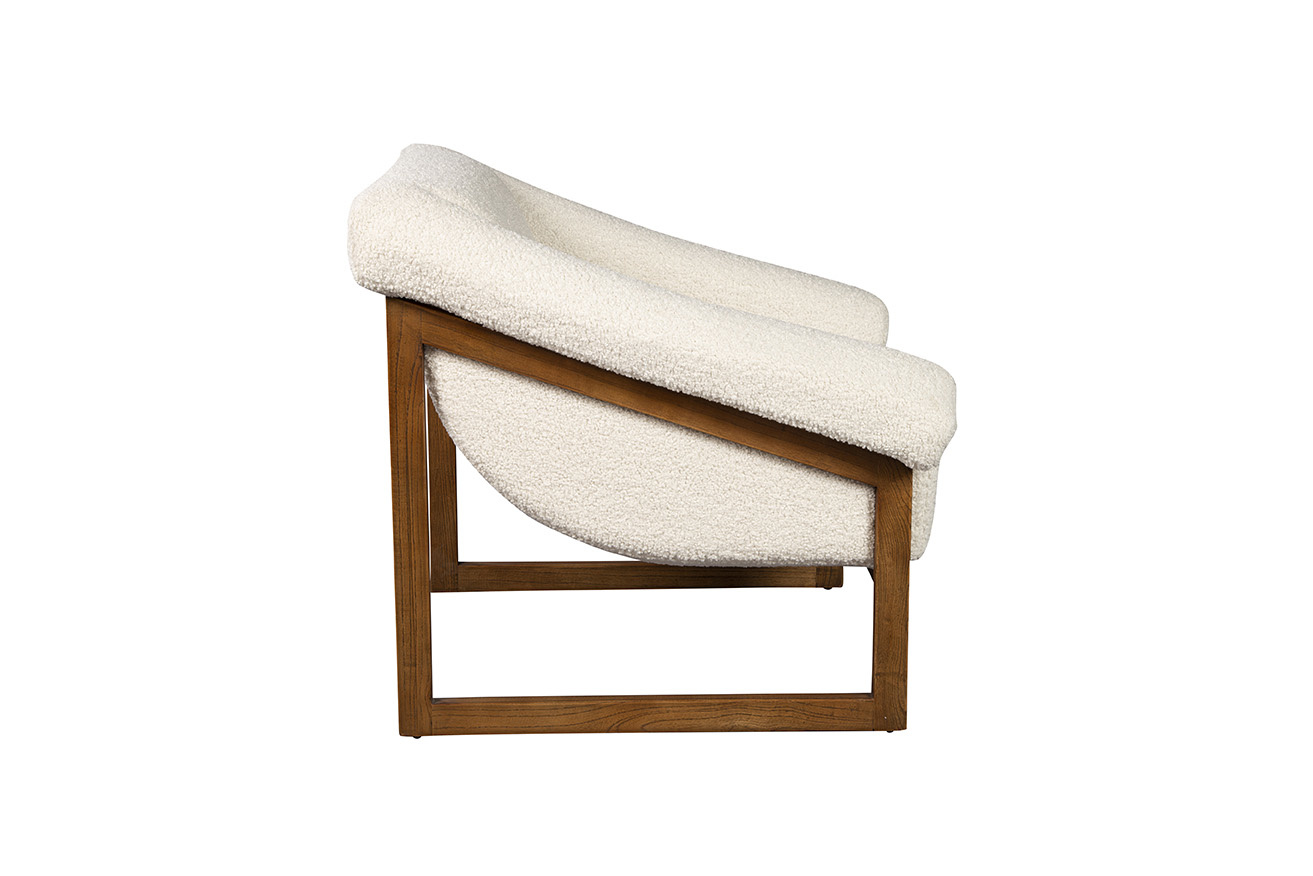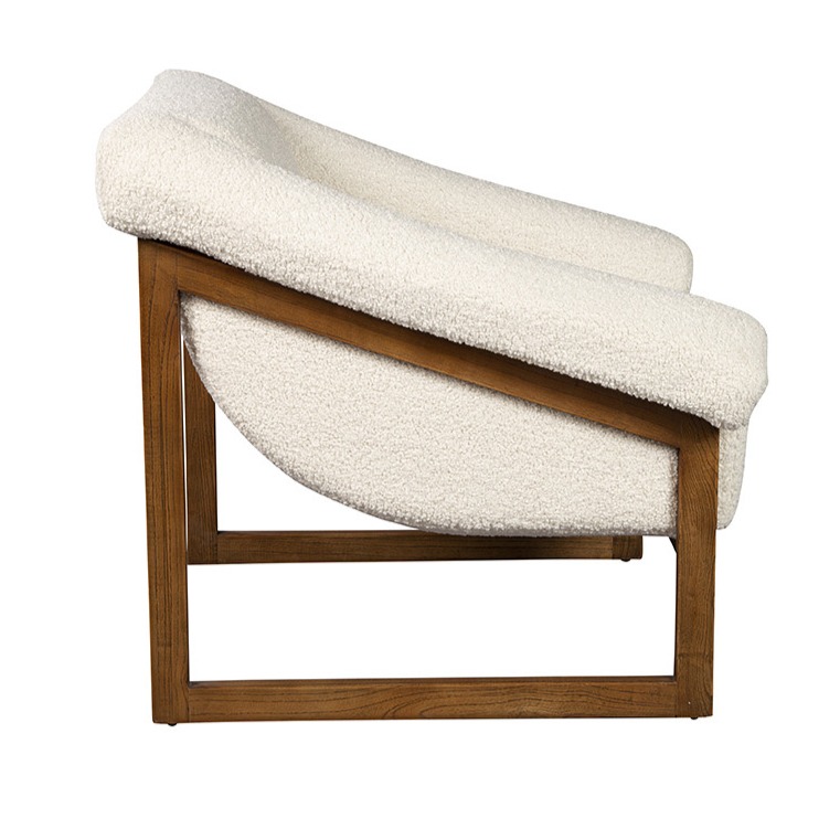 Just sink into the comfort of this smashing chair with a solid oak sled base frame. The softly textured boucle upholstery emphasizes the impression of deep seating luxury. A nod to practicality is the knowledge that the fabric is a performance one, making it a family friendly choice for your home.