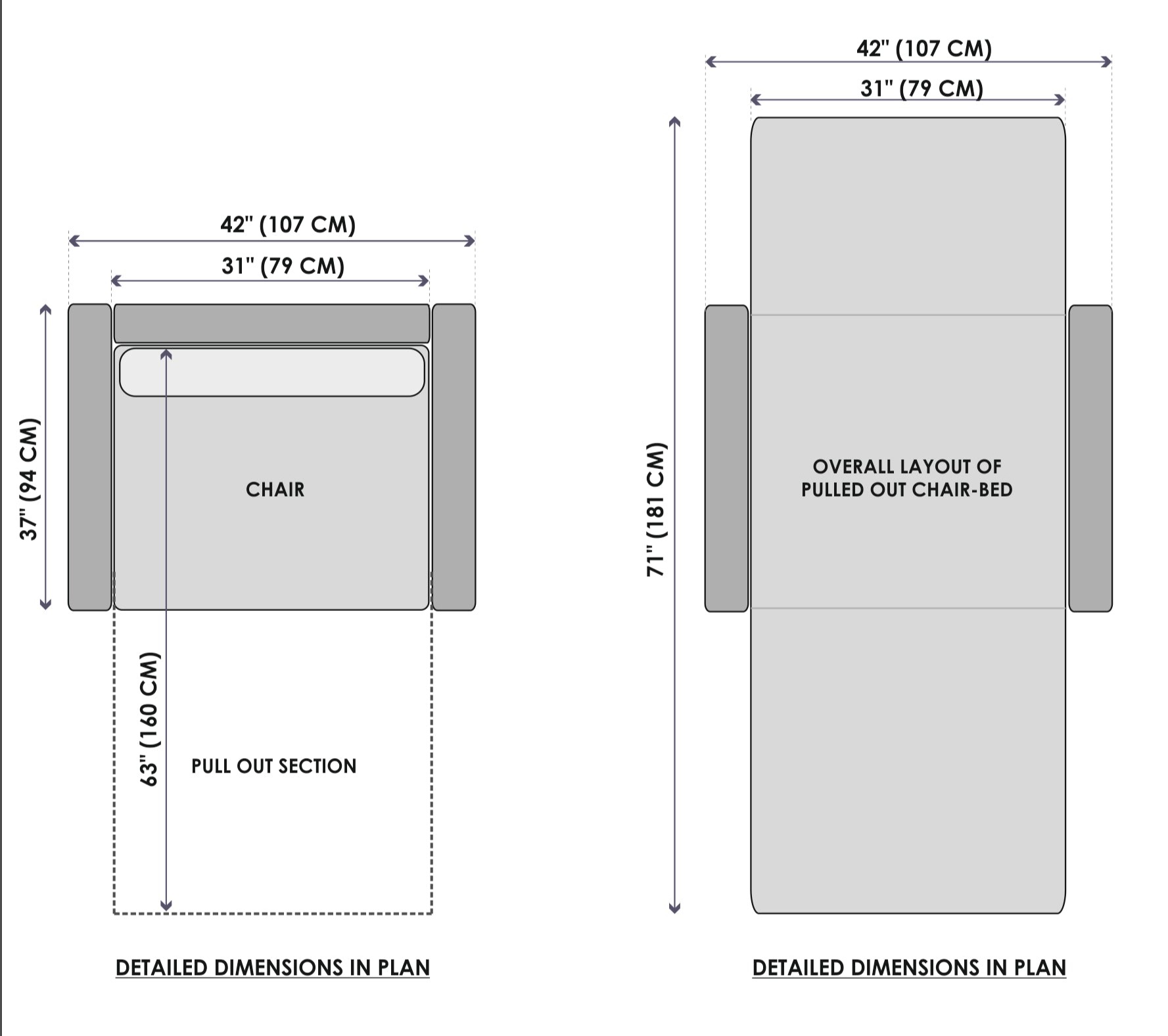 Introducing one of our best sellers - ZAR chair bed. Due to its compact design this chair bed works perfectly for any space weather it is your living room or den. It is designed with a three-level regulator, which can adjust the angles of 108°, 145° and 180°. It comes with a back cushion that provides adequate lumbar support and neck support while reclining or sleeping.